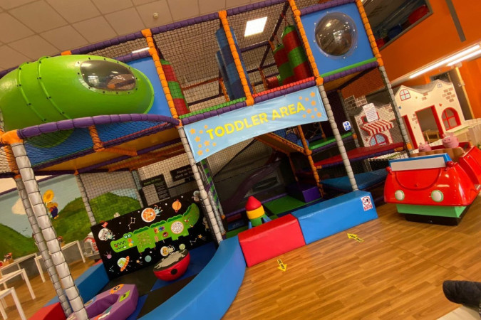 The venue includes a huge playframe, electric go-karts, ball pools, ball jets, and a football and basketball court. Younger children can enjoy a separate under-5s area with role-play rooms, puzzles, soft mats, and sensory equipment. For older ones, there are large slides, a drop slide, ride-on machines, games, and toy grabbers.