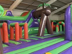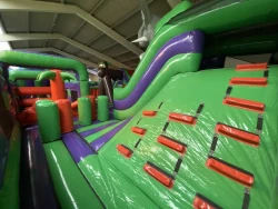 The centre features a wide range of inflatable activities including assault courses, climbing walls, ball pools, rope swings, obstacles, go-karts, and 8ft and 10ft slides. There is also a dedicated toddler area for younger children and a disco dome for added excitement. A café on site serves hot and cold food made from quality ingredients, along with freshly ground coffee.