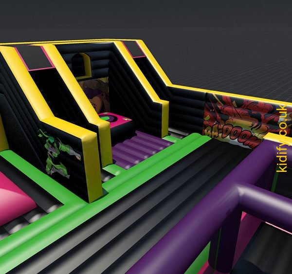It offers an arena which has Adult stunt zone, Junior stunt zone, Performance trampolines, Basher Forest Inflatables, Maze inflatables, High dive inflatables, Slide inflatables, Jelly Mountain, Wipeout balls, Inflatable obstacle course.