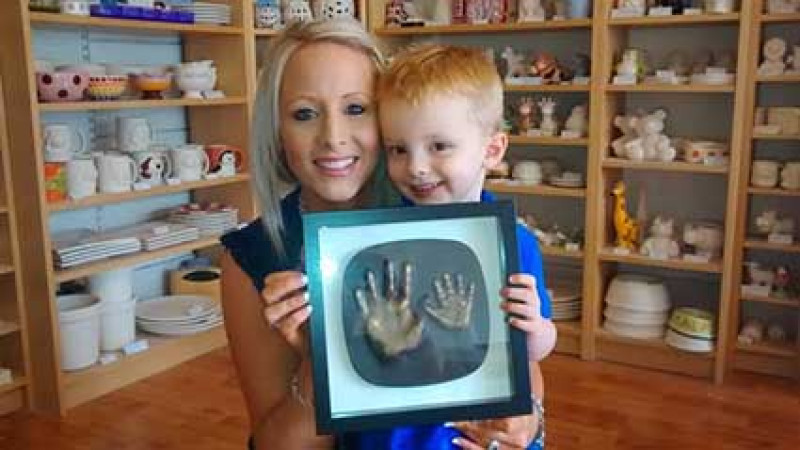 Prices start from £15 for pottery painting, £95 for a framed baby print cast, and from £85 for jewellery.