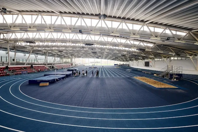 The centre features impressive indoor and outdoor tracks, including 60m, 130m, 200m, and 400m lanes, along with facilities for long jump, triple jump, pole vault, discus, and javelin. Visitors can also use the fully equipped gym and strength and conditioning area, while group sessions take place in the modern fitness class studio. Families and young athletes can join training programmes or enjoy the track for recreational use.