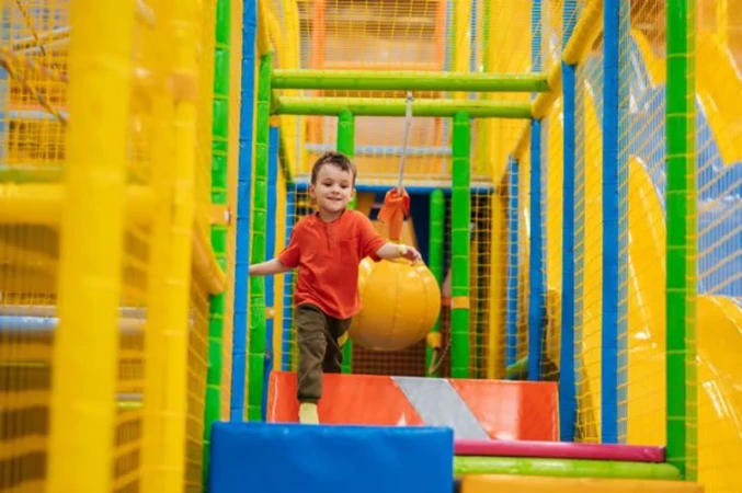 The centre features a multi-level play frame with climbing walls, slides, swings, spinning panels, wobble floors, ball pools and interactive games. There is a separate dedicated play area for babies and toddlers, ensuring age-appropriate and safe play. Parents can relax with seating, vending machines and free WiFi while keeping an eye on their children.