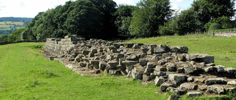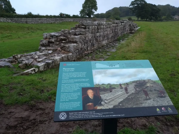 Planetrees Roman Wall - Hadrian's Wall not far east of Chesters Roman Fort in Northumberland is a 35-metre long stretch of Hadrian's Wall at Planetrees. This length of the Wall is important for what it reveals about a change of plan that took place during the construction of the Wall, when its width was narrowed from 10 to 8 Roman feet – probably to speed up building.