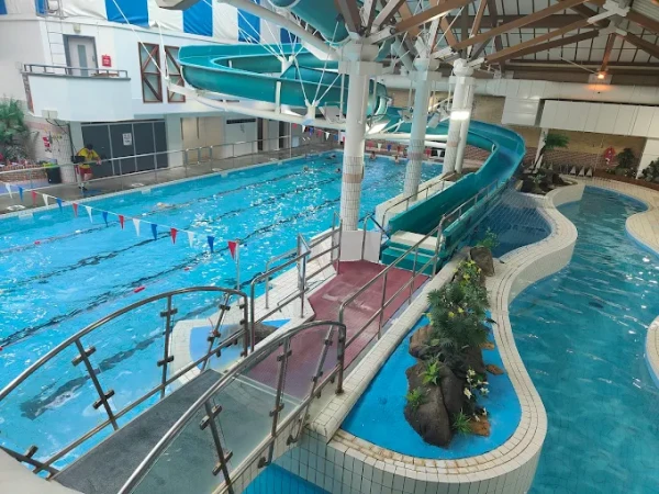 Visitors can enjoy lane swimming, fun splash sessions, or award-winning swimming lessons. The gym is equipped with modern machines and complemented by fitness classes, squash and table tennis courts, and a relaxing health suite with sauna and steam rooms. Families can also explore the two-storey soft play, holiday activities, and exciting pool features including tipping buckets and interactive play.