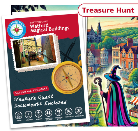 The Wizards of Watford Treasure Trail is a magical self-guided treasure hunt that takes you through the streets of Watford. It combines storytelling, exploration, and puzzle-solving to create a fun and interactive outdoor adventure. Suitable for ages 6 to 106, it offers an engaging way to discover the town with family or friends.